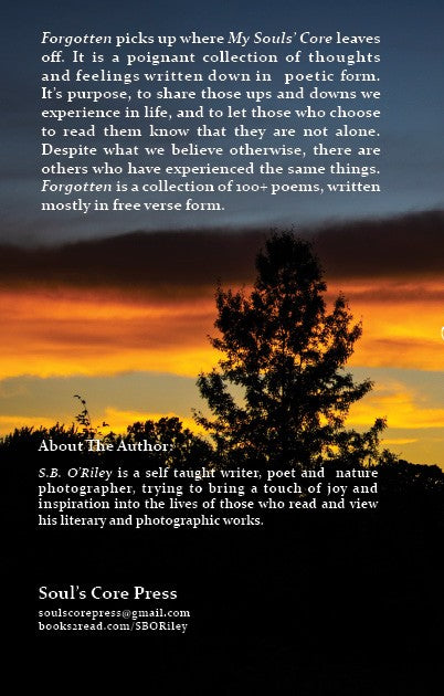 Forgotten picks up where My Soul's Core leaves off. It is a poignant collection of thoughts and feelings written in poetic form. Forgotten is a collection of over 100 + poems written mostly in free verse form.