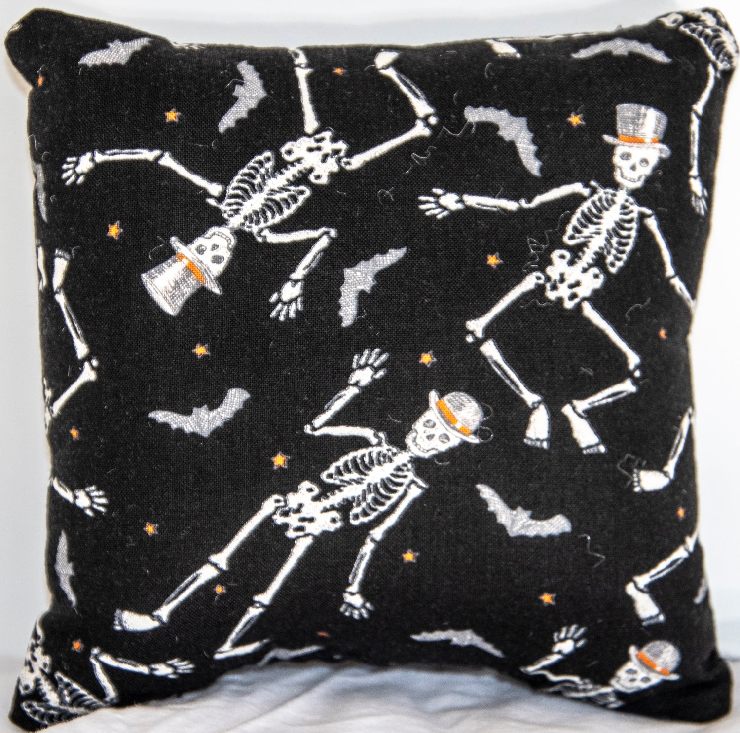 Decorative throw pillow, Halloween pattern. 100% cotton cover, polyester filled. Size: 5x5 Inches. Glows in the Dark!